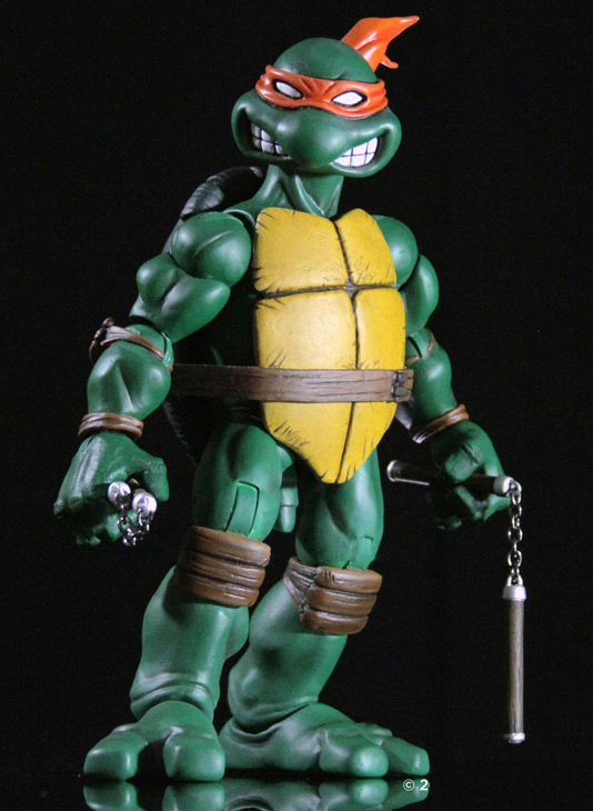 Michelangelo, the laid-back partier of the Teenage Mutant Ninja Turtles, is available for the first time in 1/6 Scale! Based on the original Eastman and Laird comic book, Michelangelo features 25+ points of articulation, interchangeable heads & hands, with weapons & accessories taken right from the pages of the comic book! Continue your Mondo TMNT 1/6 scale collection today!