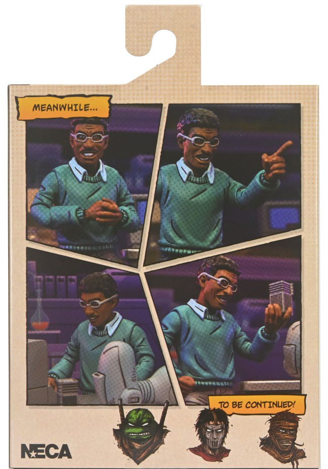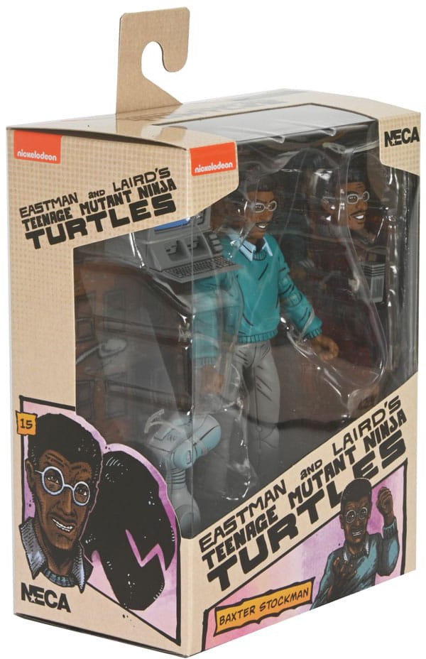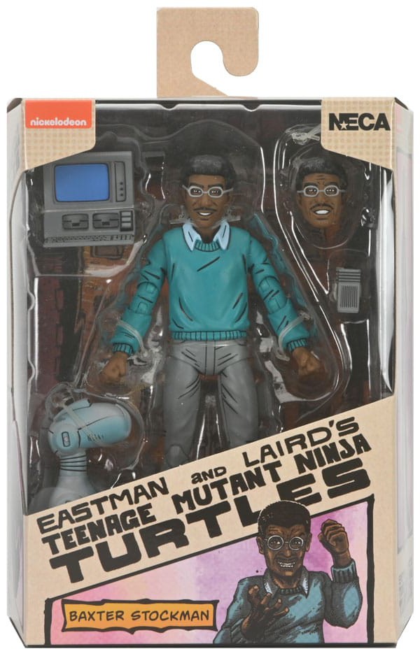 At last, the master of mechanical madness arrives in action figure form. From the Mirage Comics Teenage Mutant Ninja Turtles series, NECA presents the original Baxter Stockman: evil genius or precocious programmer gone mad in pursuit of a petty pipe dream? This 7-inch scale action figure features comic accurate deco and comes with all new mouser, computer, miniature building, plus extra hands and heads for perilous plug-and-play plundering. Window box packaging featuring new artwork by TMNT Co-Creator Kevin Eastman.