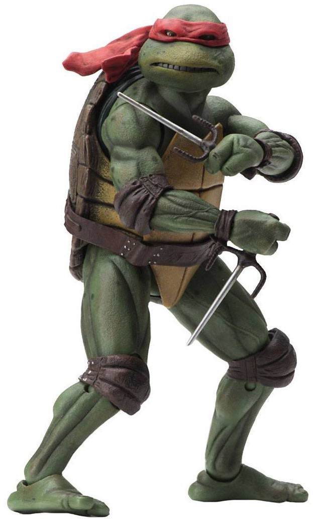 From the 1990 "Teenage Mutant Ninja Turtles" movie comes this detailed action figure. It stands approx. 18 cm tall and comes with accessories in a window box.