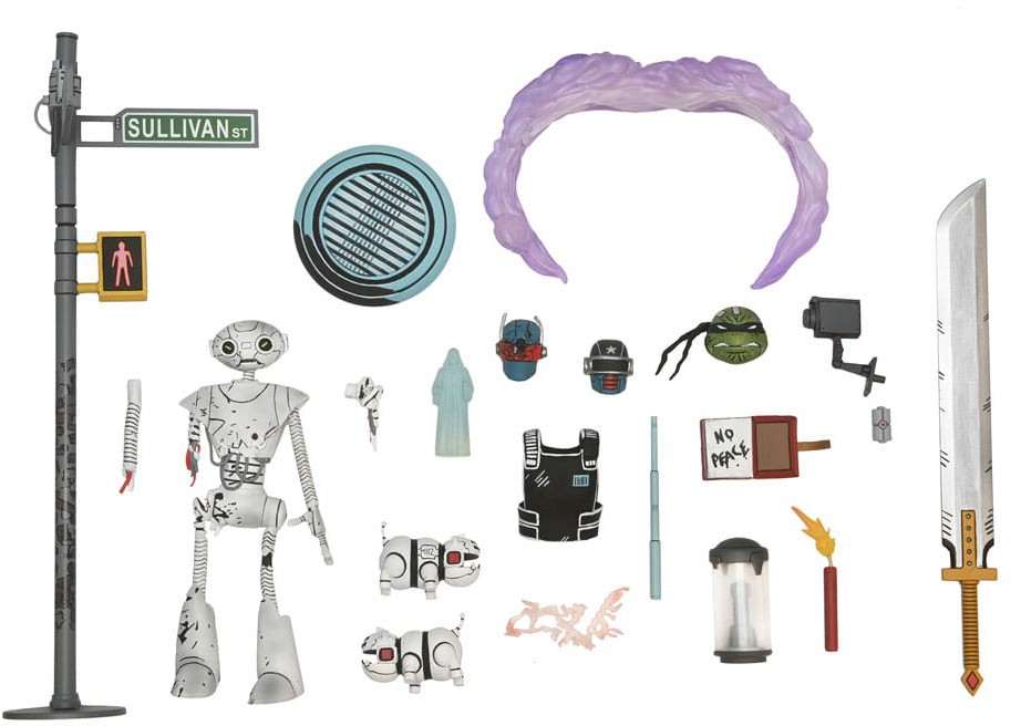 From the Teenage Mutant Ninja Turtles comic book series, The Last Ronin! In a future NYC far different than the one we know today, a lone surviving Turtle goes on a seemingly hopeless mission to obtain justice for his fallen family and friends. Add to your TMNT collection and build amazing scenes with this deluxe accessory set from NECA, featuring several scene-specific items and more from the best-selling comic book! There are endless world building possibilities with the Bleecker and Sullivan Street sign; plus, the security camera plugs into NECA's Street Scene Diorama (not included).