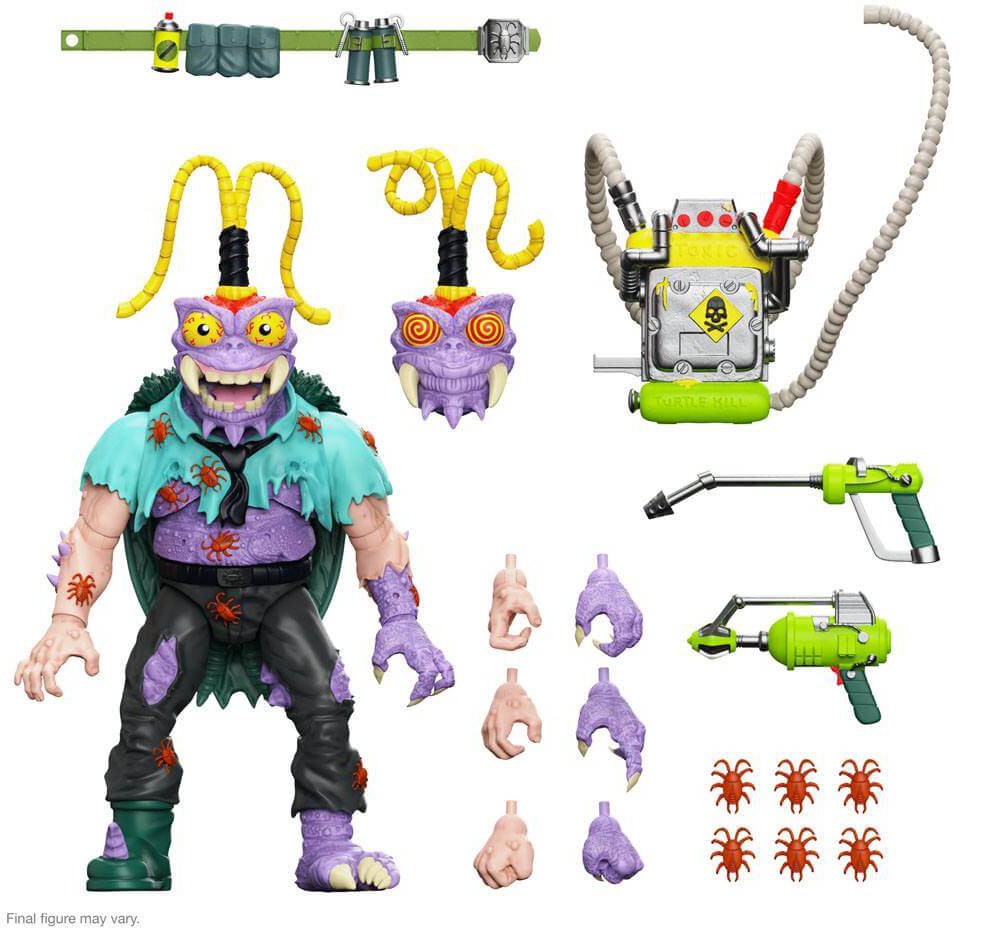 Making a living can be hard, but with a bulletproof shell, a telepathically-controlled insect army, and a backpack full of toxic chemicals, Scumbug is the perfect choice to wipe out Shredder's biggest pests - the Ninja Turtles! This 7" scale Teenage Mutant Ninja Turtles ULTIMATES! figure of Scumbug features multiple interchangeable heads & hands and a variety of accessories including a utility belt, spray guns, cockroaches, and more! Unlike the roach this baddie has mutated from, this Scumbug ULTIMATES! figure won't be around forever, so get your pre-order in before the opportunity is exterminated for good!