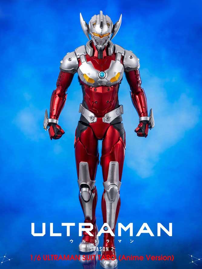 FigZero 1/6 ULTRAMAN SUIT TARO (Anime Version) stands approximately 31cm (~12.2") tall, and is a fully-articulated figure with over 52 points of articulation. The collectible has a detailed paint application and decals, and is constructed partially of die-cast zinc alloy and other metal parts. LED light-up features are installed at the eyes and the Color Timer on the chest.