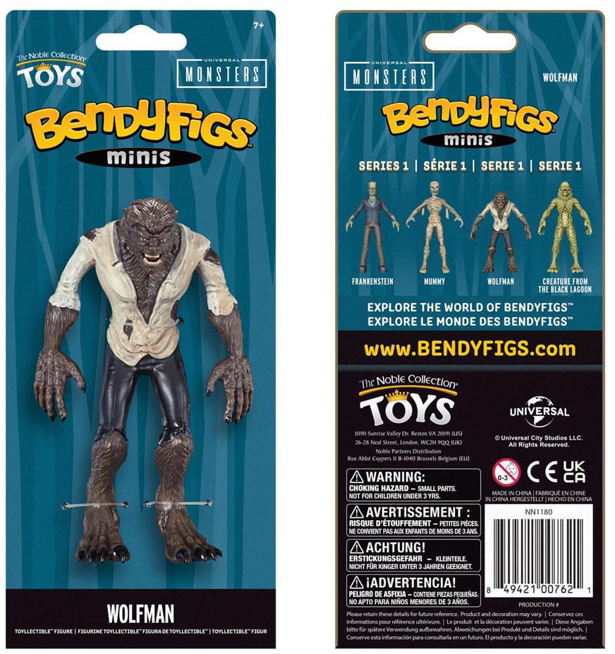 The Noble Collection is very pleased to continue our new partnership with Universal City Studios LLC, by offering these four characters from the classic Universal monster movies of the 1930 and1940s in Mini Bendyfigs size. Beloved by all fans of the fantastic, this cycle of movies introduced the first 'shared world' in Hollywood and have delighted three generations. They are as enjoyable today as they were 90 years ago.