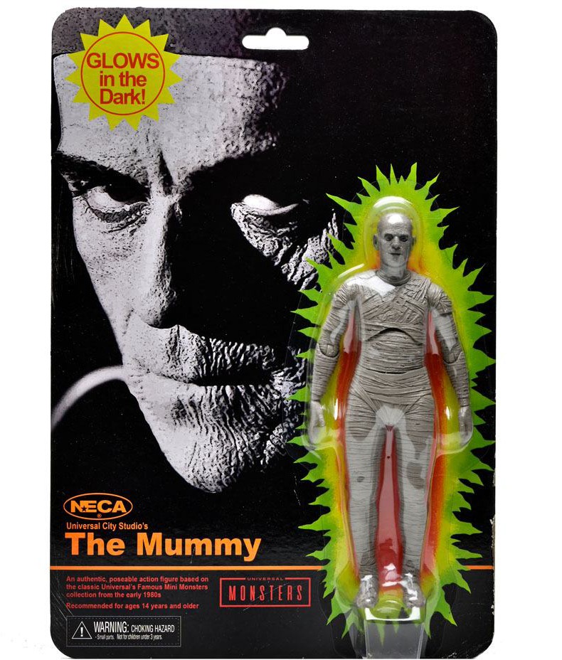 Mummy actionfigur i retroinspirerad blisterförpackning. Actionfiguren är ca 18 cm hög och lyser i mörkret.