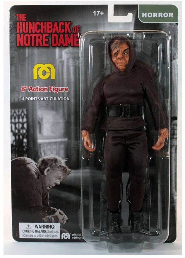 20 cm hög, fullt ledad Hunchback of Notre Dame actionfigur. Kommer med textilkläder och tillbehör i en fönsterkartong. Begränsad till 999 exemplar.