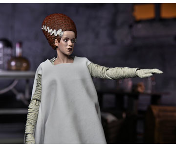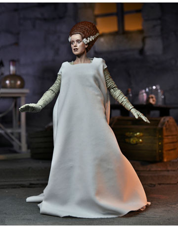 Debut filmen från Universal 1935 The Bride of Frankenstein lovade publiken något "mer skrämmande än monstret självt"! Elsa Lanchester's framställning av skapelsen sydd samman för att vara monstrets partner fångas i denna detaljerade 18 cm Ultimate actionfigur. Den kommer med bandage, avtagbar klänning, två par händer och tre utbytbara huvudsculpturer. Fönsterförpackning som är lämplig för display med öppningsbar framflik.