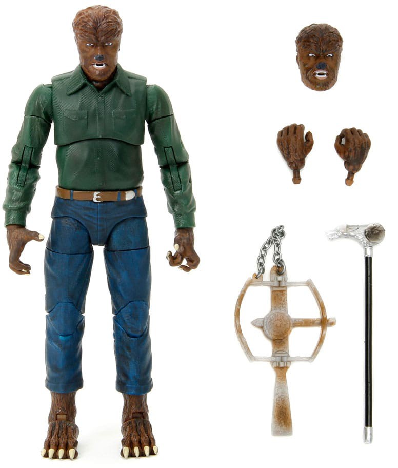 Do you believe in werewolves? You might if the moon is bright. Inspired by the 1941 classic The Wolfman is an authentically licensed 6" action figure. This collectile features highly detailed sculpt and premium painted details. The Wolfman's fully articulated form comes with a alternate head and multiple accessories.