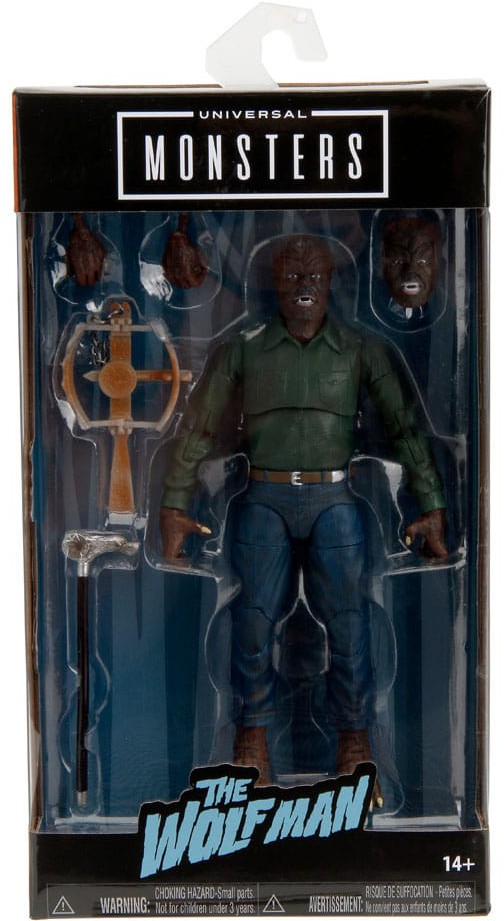 Tror du på varulvar? Det kanske du gör om månen är ljus. Inspirerad av klassikern The Wolfman från 1941 är en autentiskt licensierad 6-tums actionfigur. Den här samlarfiguren har en mycket detaljerad skulptur och förstklassiga målade detaljer. Wolfmans fullt artikulerade form kommer med ett alternativt huvud och flera tillbehör.