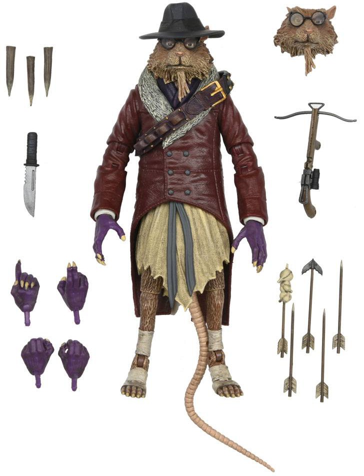 Trouble with monsters? Call the rat with the hat! NECA's newest release in its Universal Monsters x Teenage Mutant Ninja Turtles action figure line is Splinter! This continuing line pays tribute to the world's most famous turtles and Universal's icons of horror. Splinter as Van Helsing reimagines the Turtles' sensei as the famous vampire hunter, and he's equipped with the tools for taming terrors! This 7" scale figure includes crossbow, arrows, quiver, knife, stakes, interchangeable heads and swappable hands. Comes in collector-friendly window box packaging with opening flap.