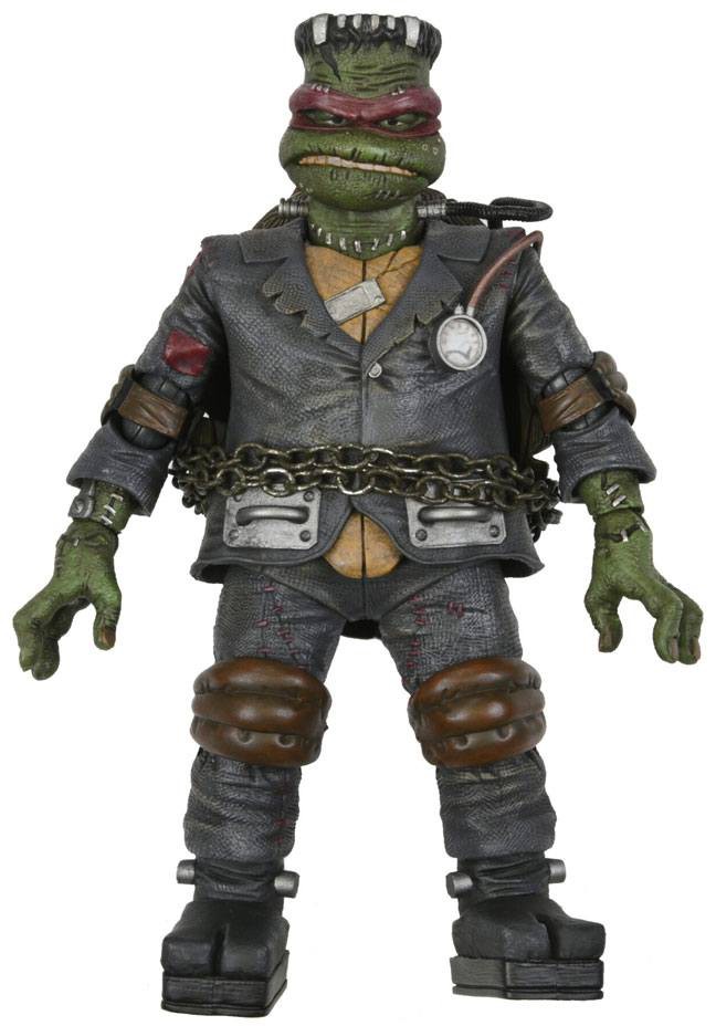 The line will pay tribute to the world's most famous turtles and Universal's icons of horror. Inspired by the silver-screen classic Frankenstein, celebrating its 90th anniversary in 2021, Raphael as Frankenstein's Monster reimagines the temperamental Turtle as the misunderstood monster. Includes metal chain, interchangeable hands, and two lightning bolt sai.