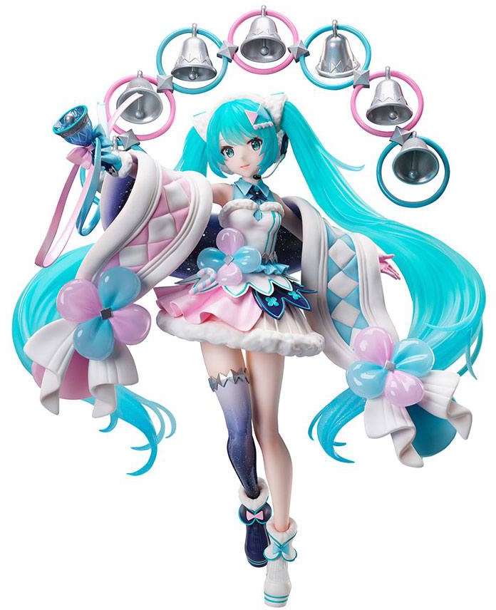 The highly detailed 1/7 scale PVC statue shows the Miku Hatsune, ´face´ of the Software-Synthesizer ´Vocaloid´. It stands approx. 23 cm tall and comes in a window box packaging.