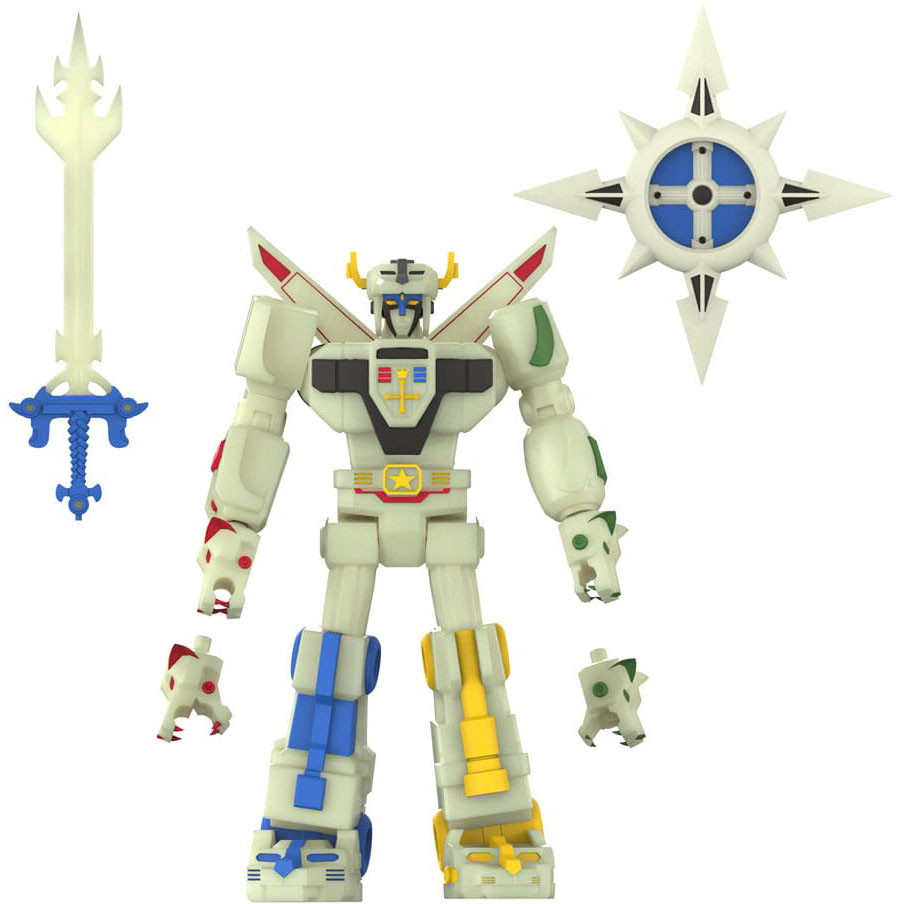 Voltron är en hoppets fyr i en galax som plågas av Drule Empire, och den mäktiga roboten skiner aldrig klarare än när den visar upp sitt brinnande svärd! Denna välartikulerade Voltron ULTIMATES! Lightning Glow Voltron är inspirerad av ögonblicket då Voltron formar det brinnande svärdet och lyses upp av en blixt. Tillverkad av självlysande material, med intrikat skulptering, förstklassiga färgdetaljer och utbytbara lejonhuvuden samt självlysande sköld och tillbehör till det brinnande svärdet.