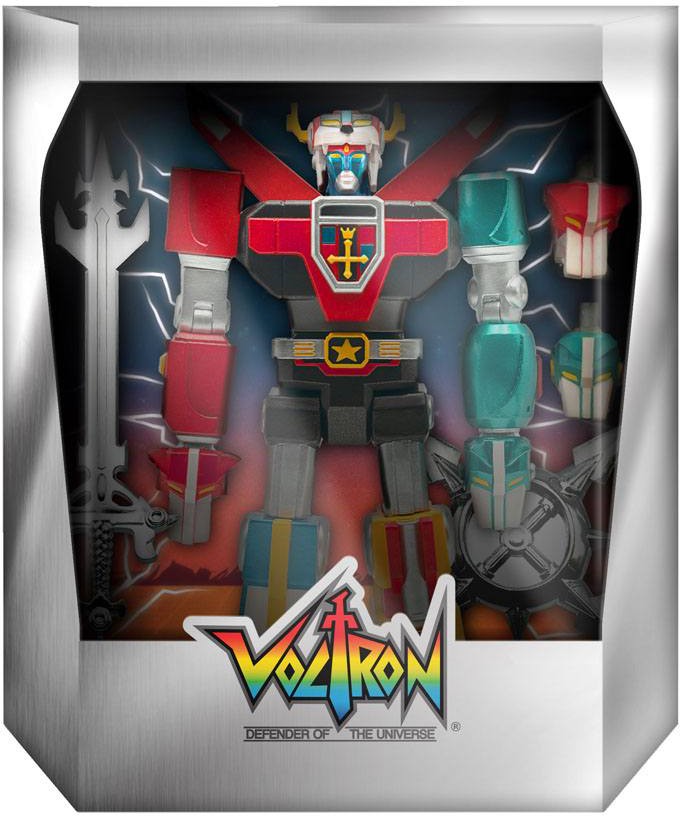 Super7 är stolta över att presentera Voltron, Universums försvarare! Denna figur, deras andra Voltron, är baserad på den ursprungliga Bandai Voltron Lionbot-diecast-figuren från 1981. Denna version har ett leksaksexakt metalliskt färgschema, uppdaterad artikulation i benen och kromtillbehör!