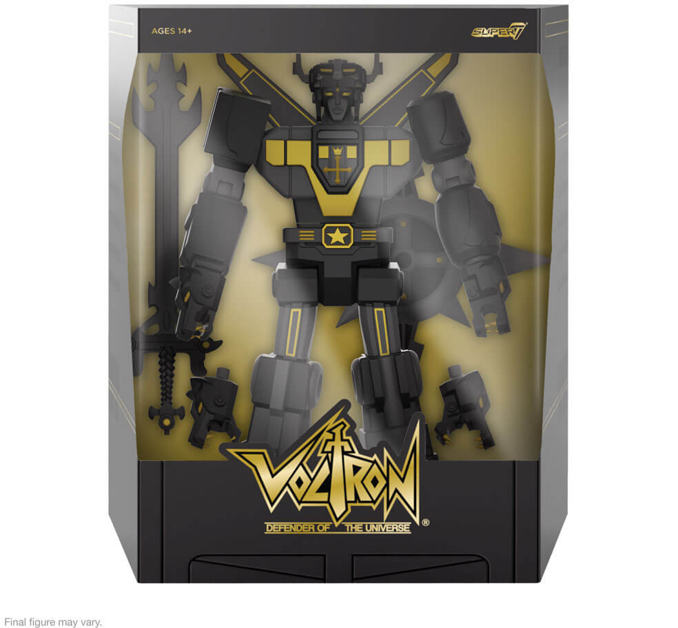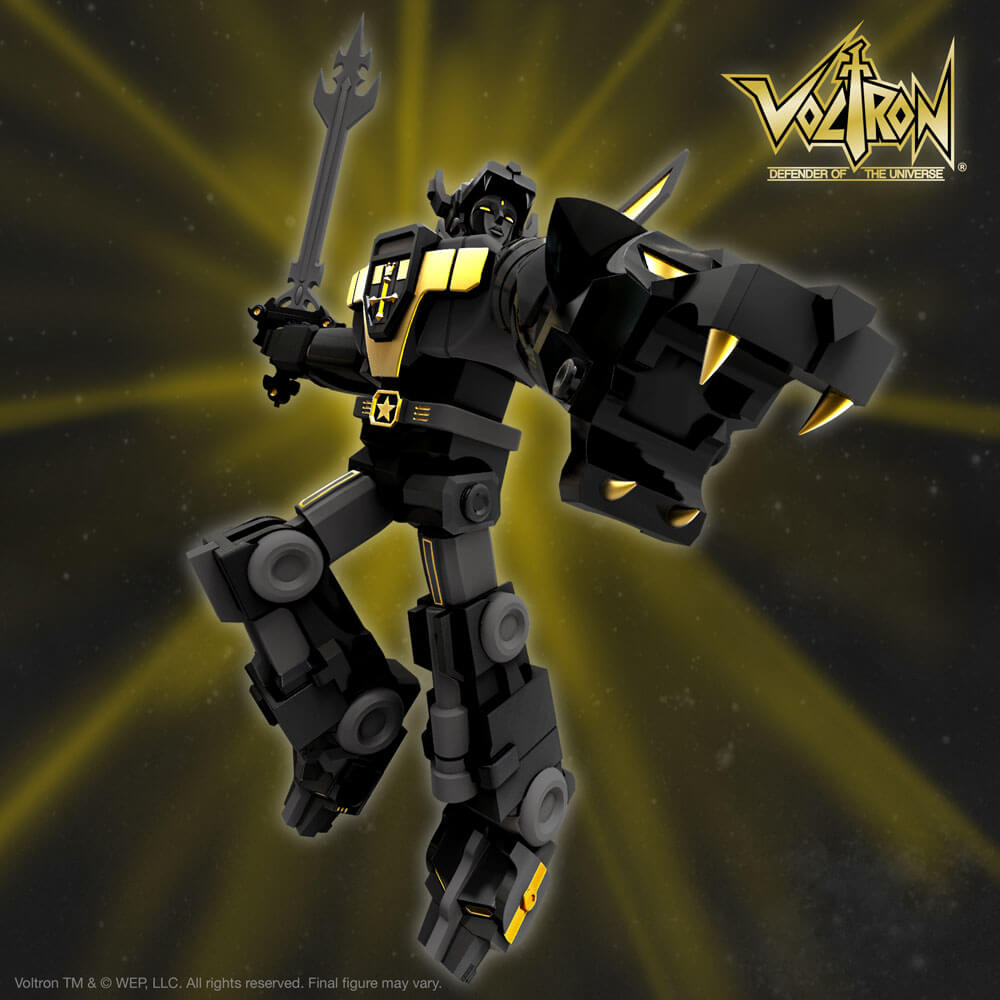 scheme, includes interchangeable hands along with Blazing Sword and shield accessories, and comes packaged in a collector-friendly deluxe slipcase style box with gold foil accents. Lord Zarkon, Prince Lotor, and Witch Haggar will think twice before trying to tangle with this version of Voltron, but we know you won't hesitate to add the made-to-order Galaxy Black Voltron ULTIMATES! figure to your collection! decide his ultimate fate!