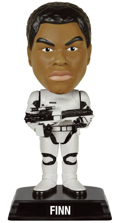 En Bobblehead av Finn i Stormtrooper-rustning från Star Wars the Force Awakens i Funkos Wacky Wobbler-serie.