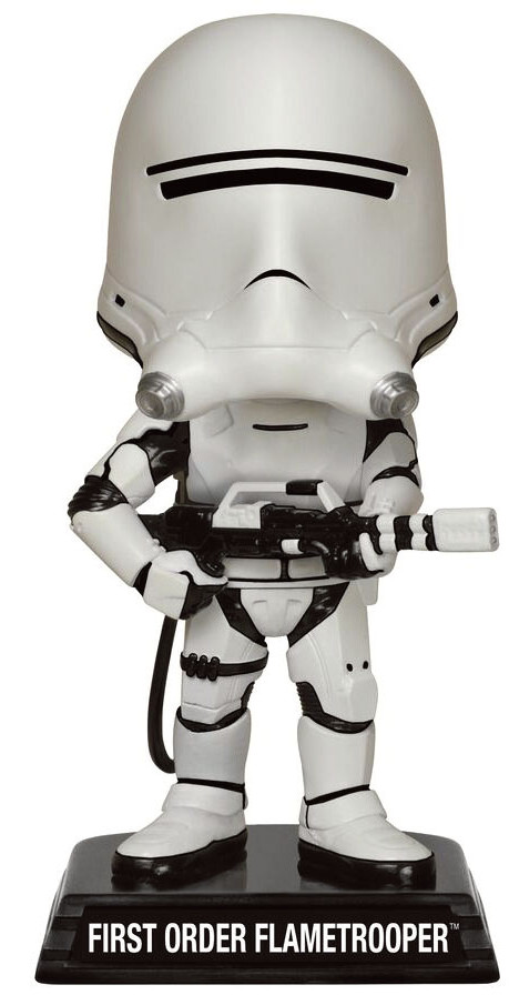 En Bobblehead av en First Order Flametrooper från Star Wars the Force Awakens i Funkos Wacky Wobbler-serie.