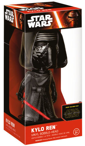 En Bobblehead av Kylo Ren med uppfälld luva från Star Wars the Force Awakens i Funkos Wacky Wobbler-serie.