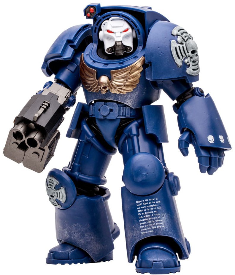 They are amongst the greatest heroes of Mankind clad in the indomitable Tactical Dreadnought Armor. The right to use this suit of armor is the highest honor uphold on a veteran Space Marine. Equipped with teleportation devices, Terminators can deploy almost anywhere on the battlefield. No foe is safe from their assault.