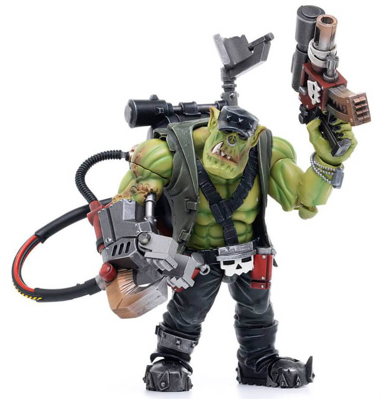 Joy Toy väcker liv i Ork Kommandos med denna fullt rörliga Warhammer actionfigur i skala 1/18. Varje figur inkluderar utbytbara händer och vapen.