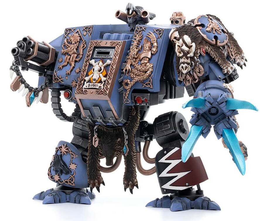 Interred in a custom-built Dreadnought, Bjorn is a legendary figure amongst the Space Wolves, for he fought in the Horus Heresy amongst the retinue of Leman Russ himself. Bjorn the Fell-Handed is the oldest warrior in the Imperium, serving first as a warrior, then as Wolf Lord, and finally a Dreadnought, to this day he is the spiritual and moral compass for the entire Chapter. This 1/18 scale fully articulated figure stands approximately 7.6" tall.