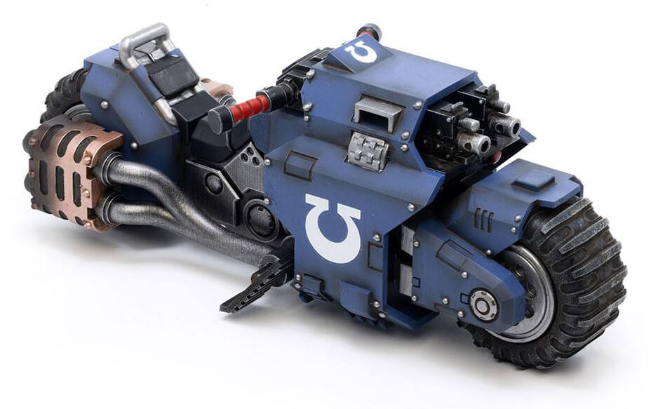 Denna Warhammer Ultramarines Outrider Bike i skala 1/18 passar bra till Ultramarines actionfigurerna i samma serie. Figurer och accessoarer är ej inkluderade.