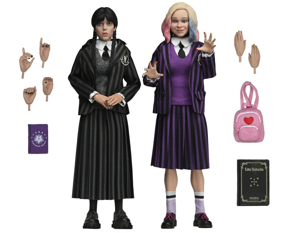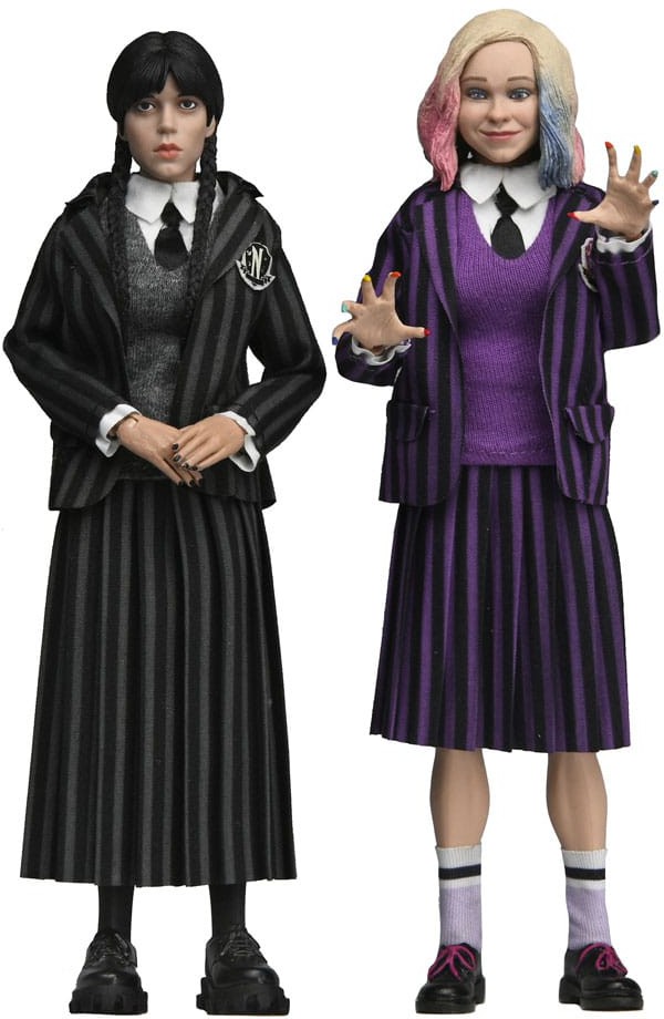 Show off your love for the critically acclaimed Netflix series Wednesday every day of the week with this action figure 2-pack from NECA! Smart, sarcastic, and a little dead inside, Wednesday finds herself expelled and transferred to Nevermore Academy, a private school for monstrous outcasts.