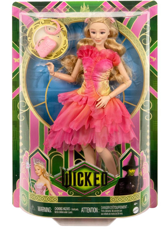 Den mest populära flickan i Oz är här! Modedockan Glinda är inspirerad av Universal Pictures Wicked och fångar systerskapets hjärta från filmen. Glinda är klädd i avtagbara filmkläder med väska, halsband och hårspännen och kan ta dynamiska poser med flexibilitet i bålen, armbågarna, handlederna och knäna. Hon har också karaktärens långa, blonda hår för accessoarer och styling. Fans kommer att vilja samla på alla dockor från landet Oz! Var och en säljs separat, i mån av tillgång. Dockorna kan inte stå ensamma.