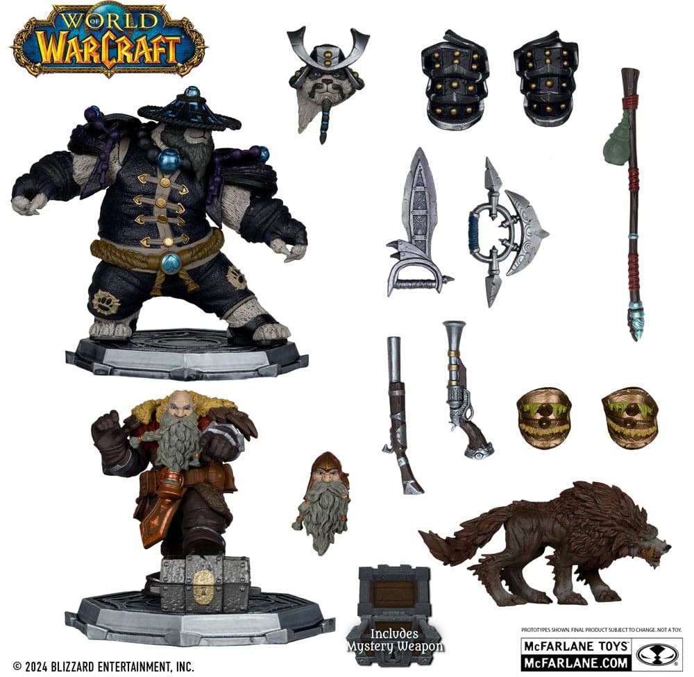 - Pandaren: Monk & Rogue includes 1 alternate head, 2 weapons, 1 staff, 2 interchangeable armor pieces, and environmental base