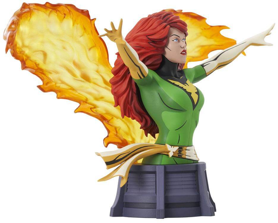 The Phoenix has risen! The X-Men's Jean Grey assumes the mantle of one of the Universe's most powerful entities in this all-new mini-bust in the X-Men Animated line! Wearing her famous green outfit, this approximately 6-inch resin mini-bust features cartoon-accurate sculpting and paint applications, and is limited to only 3000 pieces. It comes packaged with a certificate of authenticity in a full-color box. Designed by Barry Bradfield, sculpted by Paul Harding!