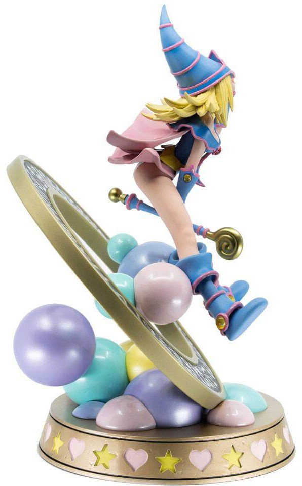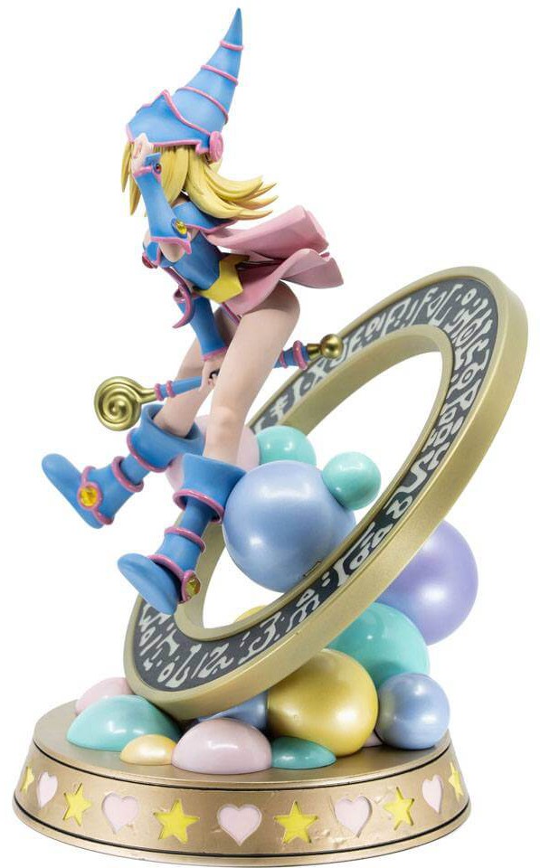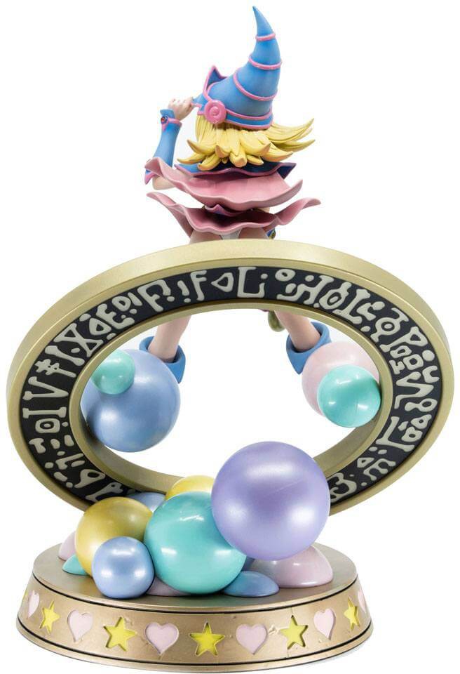 Dark Magician Girl is a six-star level spellcaster and her spells are not to be taken lightly. She has trained with the best-Dark Magician. Dark Magician Girl helped Yugi defeat many foes from Battle City to the Duel Festival. For this statue, Dark Magician Girl is high up in the air and with her wand in front, ready to go into battle! Behind her is the Magician's Seal, and colorful magic orbs sprout from the base.