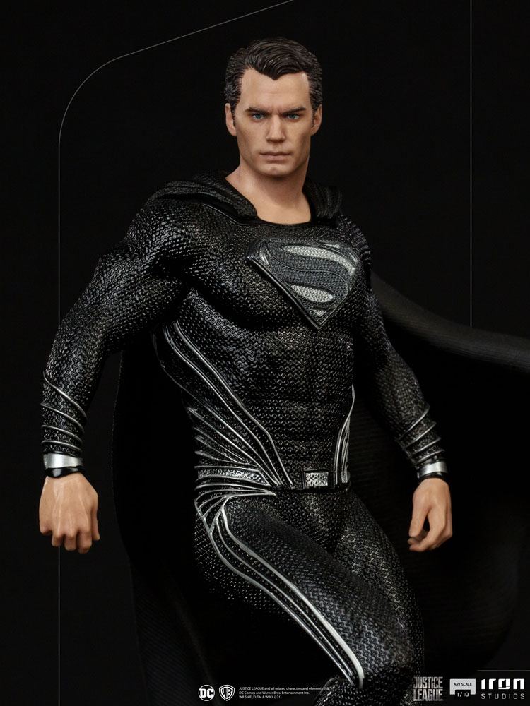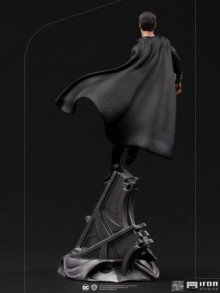 Iron Studios presenterar stolt sin "Superman Black Suit Art Scale 1/10 Statue - Zack Snyder's Justice League - Iron Studios", med sin största hjälte som bär den ikoniska svarta och silveruniformen, precis som det borde vara på hans triumferande återkomst , för att gå samman med de andra hjältarna i skapandet av Justice League, för att förhindra förstörelsen av jorden av de invaderande styrkorna för den intergalaktiska tyrannen Darkseid, under ledning av hans general Steppenwolf och hans legion av Parademons.