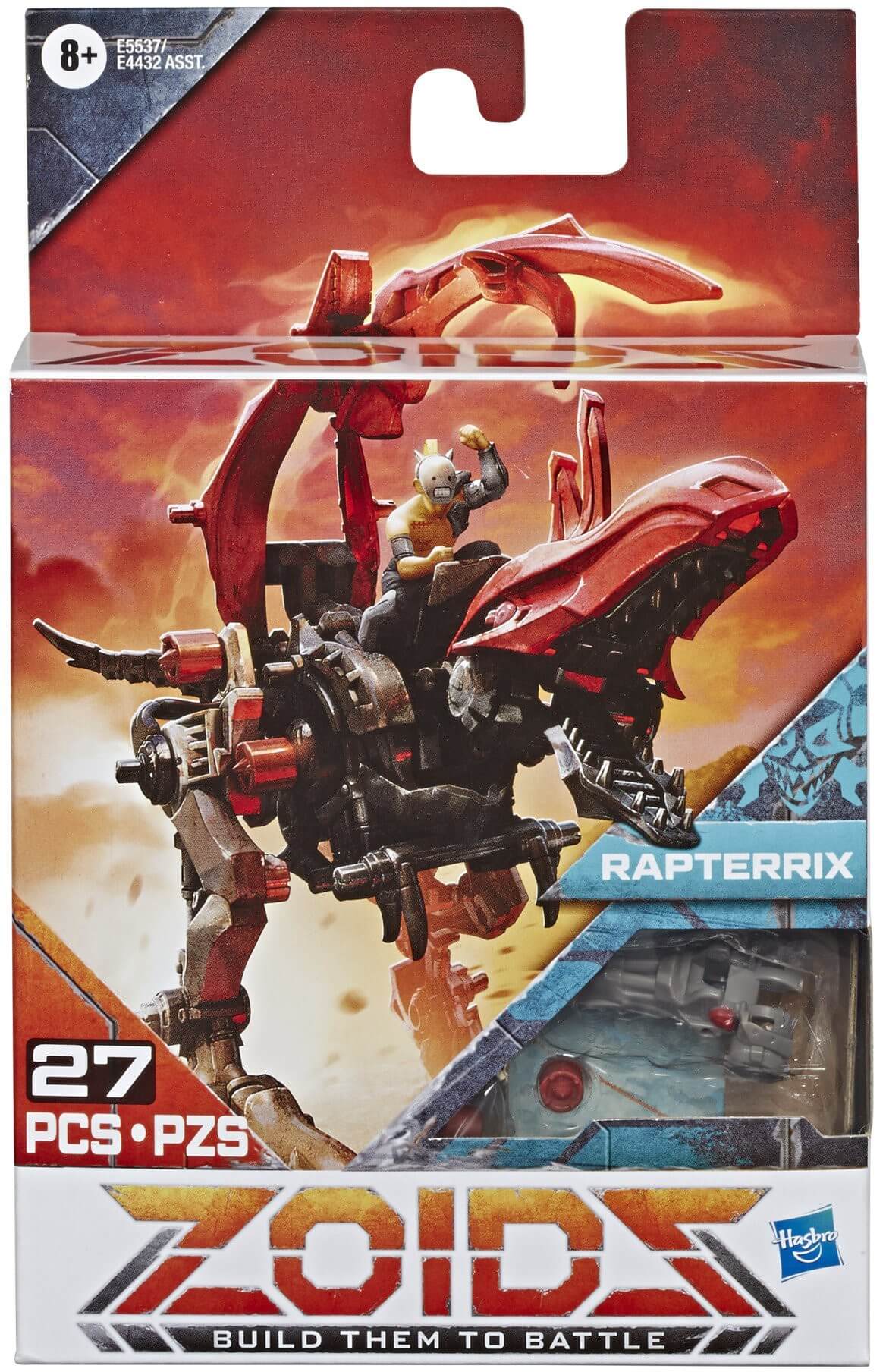 Includes 27 pieces to build Zoids Mega Battlers Rapterrix figure with attachable rider, battle mat, and instructions.