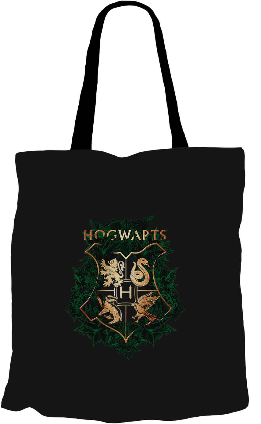 Ställ en fråga om Harry Potter - Hogwarts Logo Gold Green Tygpåse