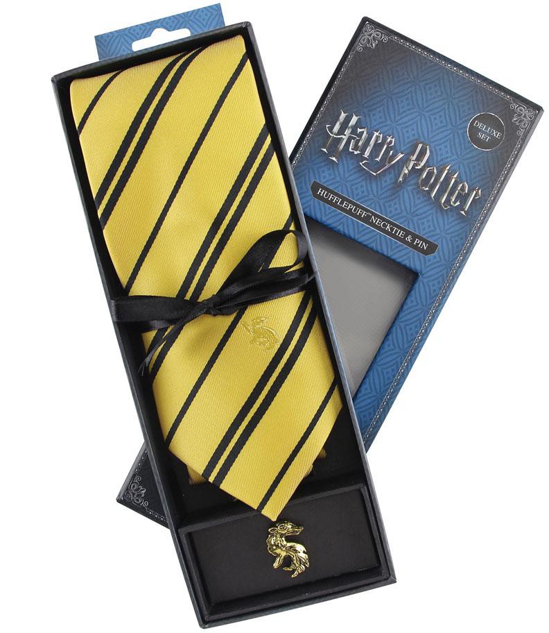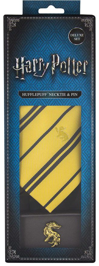 This 100% micro fibra Necktie from the Harry Potter movies measures 145 x 8 x 3,5 cm and features a printed Hufflepuff patch. Comes with a metal pin in a window box packaging.