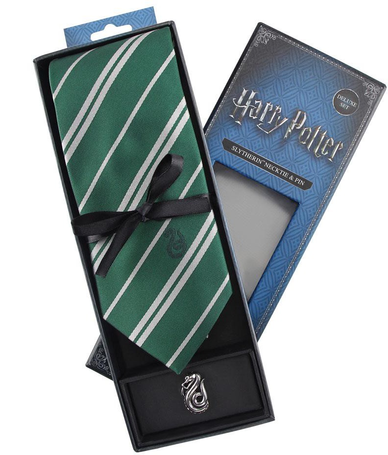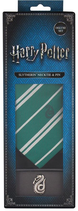 Harry Potter slips i Slytherins färger och med ett litet Slytherin embelm. En liten Slytherin pin i metall medföljer också.