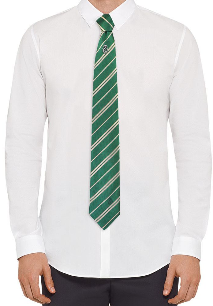 This 100% micro fibra Necktie from the Harry Potter movies measures 145 x 8 x 3,5 cm and features a printed Slytherin patch. Comes with a metal pin in a window box packaging.