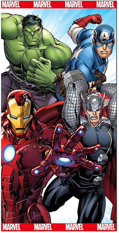 Snygg handduk med Iron Man, Hulken, Thor och Captain America!