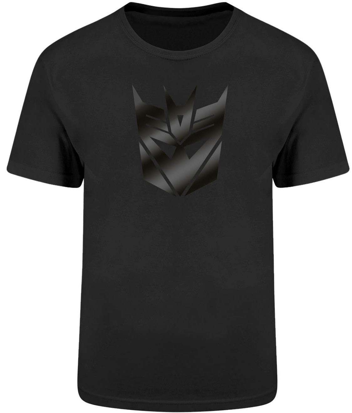 Unisex Transformers T-shirt from Heroes Inc. Black Decepticons logo on black t-shirt.