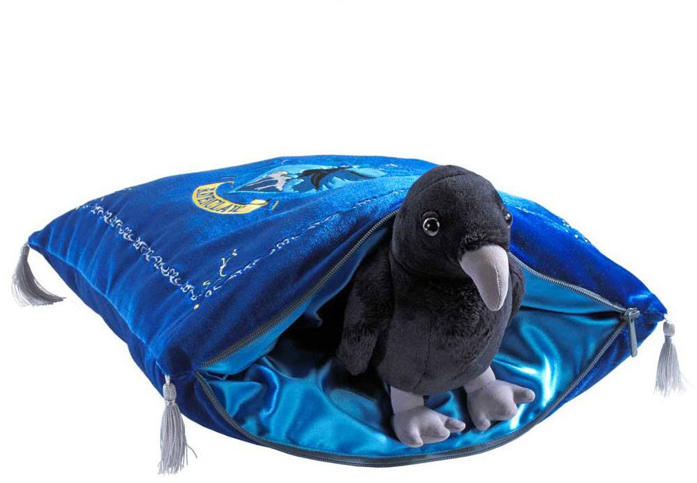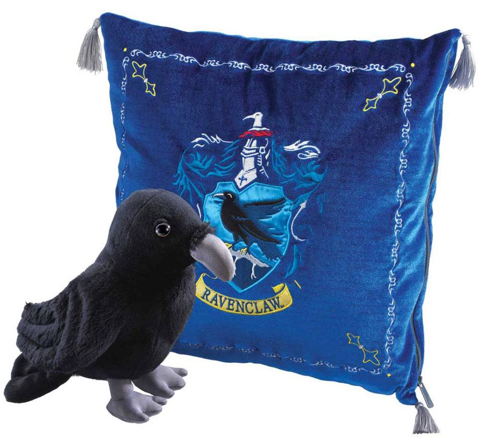 Harry Potter kudde med Ravenclawmotiv och tillhörande gosedjur.