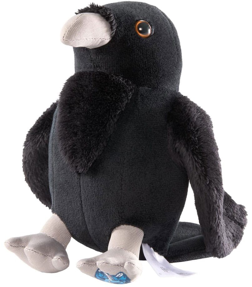 This raven plush is approximately 14 tall and features a Ravenclaw crest under the bird's foot.