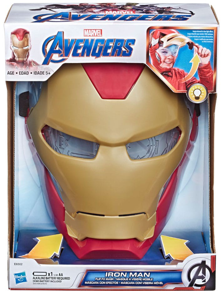 Suit up like Tony Stark! Lifting the face of this Iron Man Flip FX Mask activates lights to simulate the interior view of Stark's high-tech helmet. With 2 mask views, wearers can choose between flipping the mask up to deliver a witty one-liner, or closing it to focus on combat moves like Iron Man's signature repulsor blast. The Iron Man Flip FX Mask is gear worthy of The Avengers' most tech-savvy Super Hero.