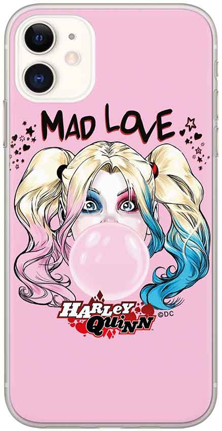 Snyggt mobilskal i stötdämpande TPU-plast. Harley Quinn på rosa bakgrund med texten "Mad Love"