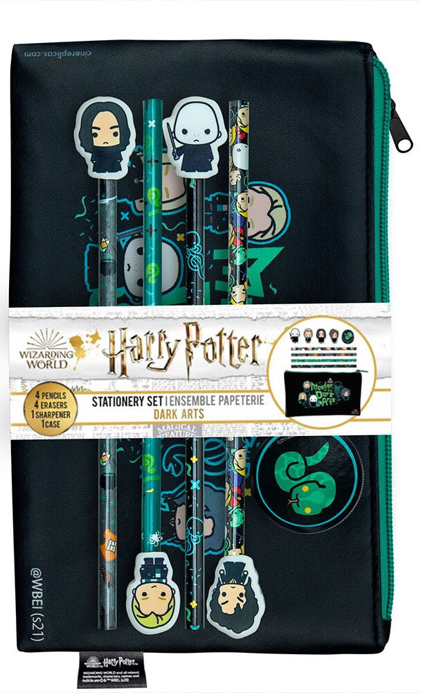 Direkt från Harry Potter-filmerna kommer detta coola skrivset. Den har ett pennfodral med dragkedja, pennor, suddgummi och vässare.