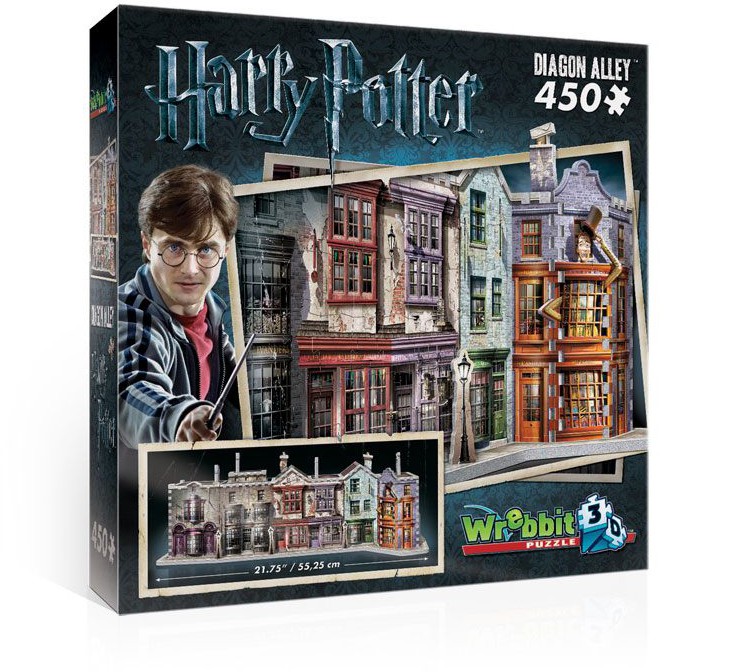 Going through a brick wall or using Floo Powder to access Diagon Alley isn't necessary anymore. This 450-piece 3D puzzle gives muggles full access to a hidden side of London. Discover a unique range of mythical shops where young wizards find their school supplies and more. Whether it's for a wand at Ollivanders, books at Flourish & Blotts or simply for fun at Weasleys' Wizard Wheezes, you're sure to find what you're looking for!