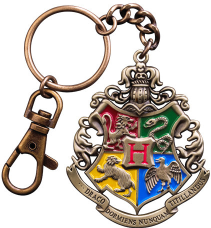 A hand painted keychain of the Hogwarts School crest, approximately 5 cm in width, offered in a four colour box.