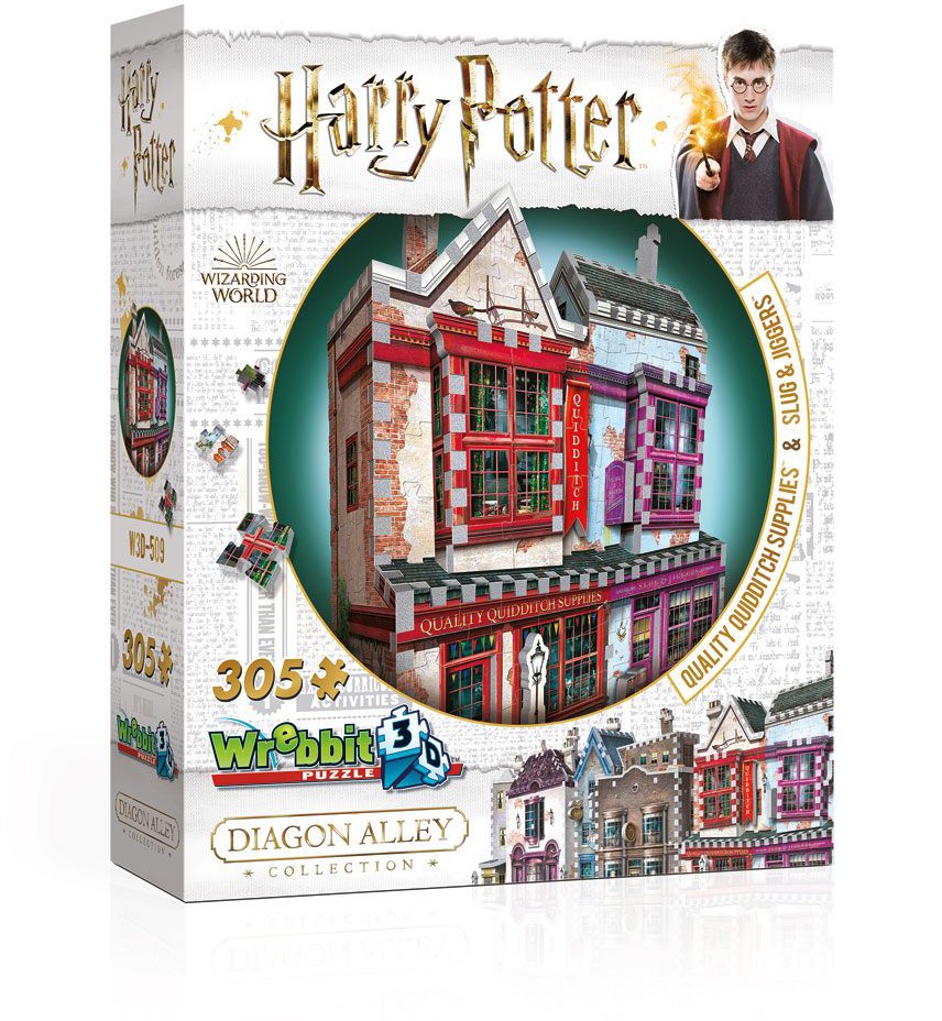 Wrebbit Puzzle is proud to present their new Diagon Alley Collection! This 305-piece 3D puzzle gives muggles full access to a hidden side of London. Discover a unique range of mythical shops where young wizards find their school supplies and more.