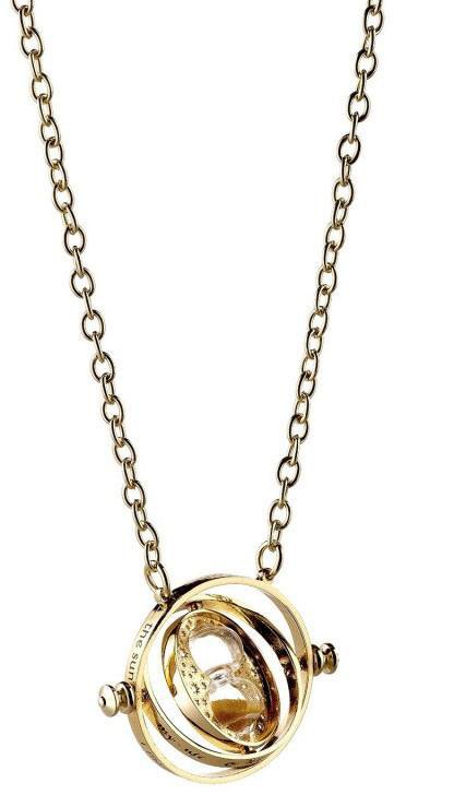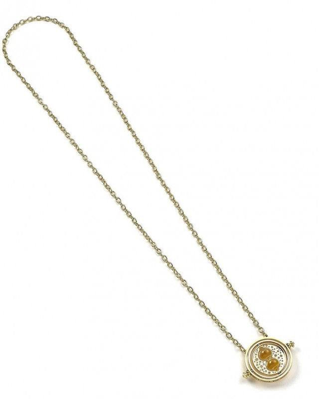 Officiellt licensierat hänge på ett guldpläterat halsband. Berlocken är cirka 30 mm hög och 30 mm bred. Halsbandet är en guldpläterad 63 cm kedja. Roterande Time Turner.