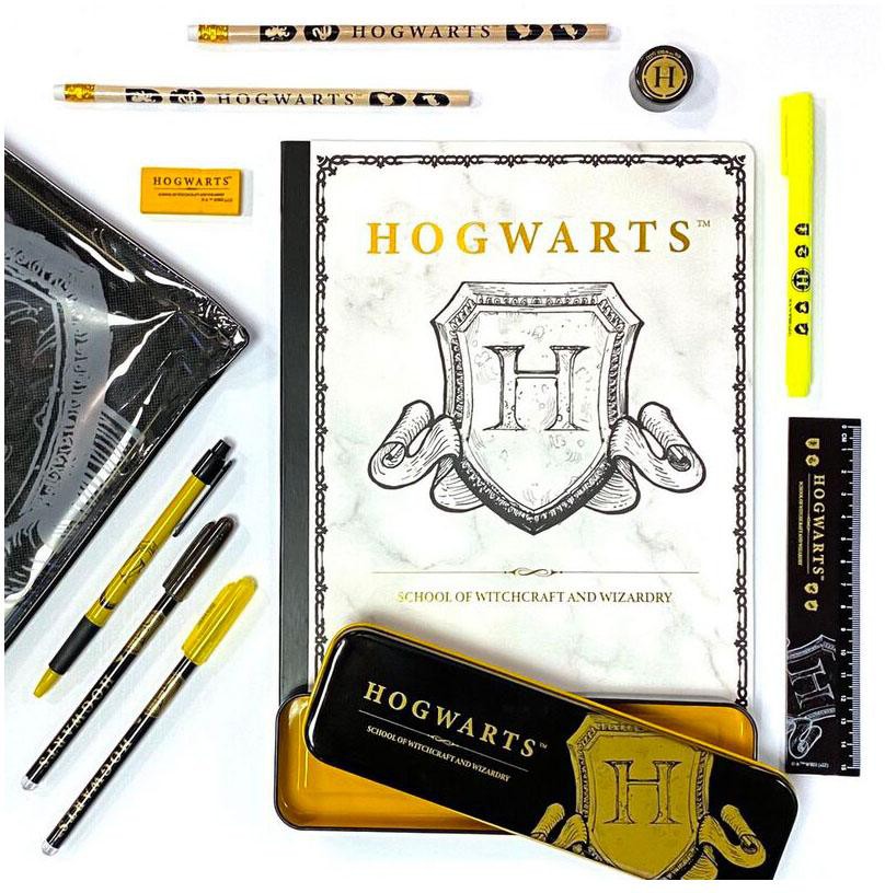 Straight from the ´Harry Potter´ movies comes this cool stationery set. It features a zip lock wallet, pencil tin, pen, pencil, eraser, sharpener, ruler and notepad.
