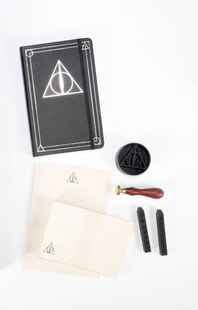 Celebrate the artistry of the Harry Potter films with this Deathly Hallows-themed stationery set. The Elder Wand, the Resurrection Stone, and the Cloak of Invisibility - together these make up the Deathly Hallows.