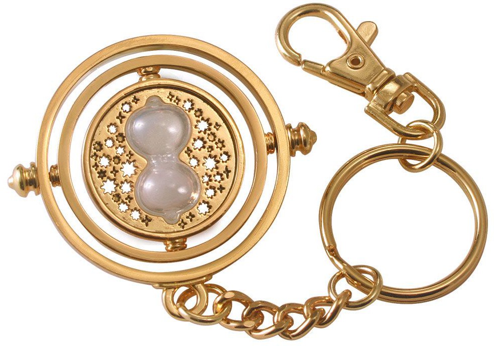 A keychain featuring a 4 cm version of Hermione's Time Turner with all movements.